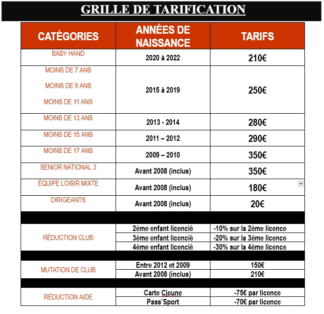Tarifications & Inscriptions